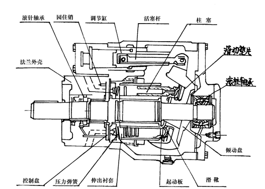 3、泵的解體:取下泵上部的壓力控制閥。取下平鍵以及前后壓蓋。松開上部缸蓋螺絲,取下缸蓋,再取出油缸,注意,取油卸時要拿掉活塞與斜盤的連接銷。