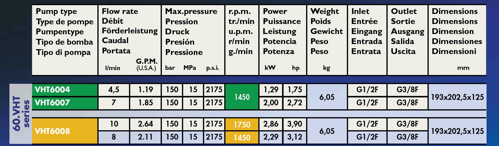 進(jìn)液溫度85℃,壓力150Bar,流量8-10L/min,轉(zhuǎn)速1450/1750rpm,選配功率3kW電機(jī)