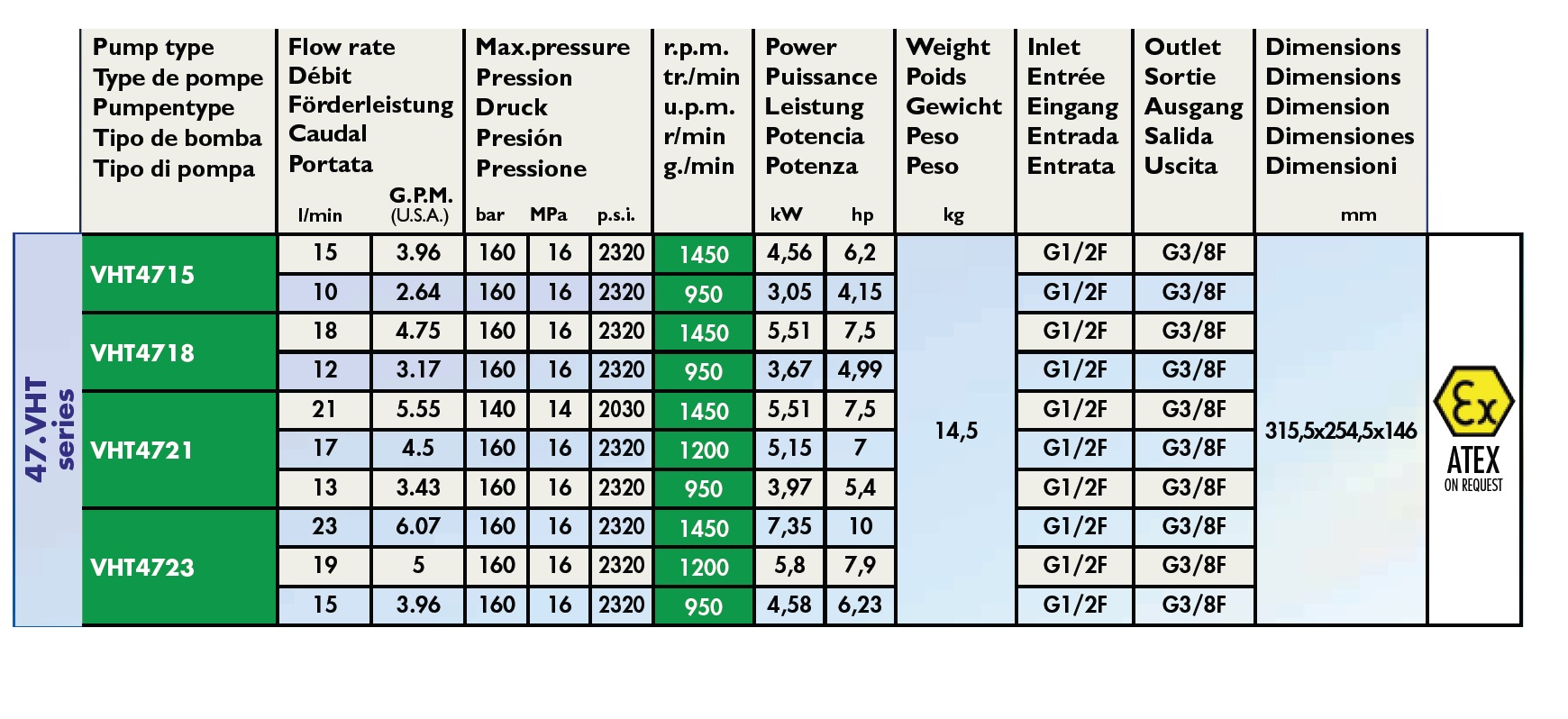 壓力160Bar,流量10-15L/min,轉速1450rpm,功率3.05/4.56kW