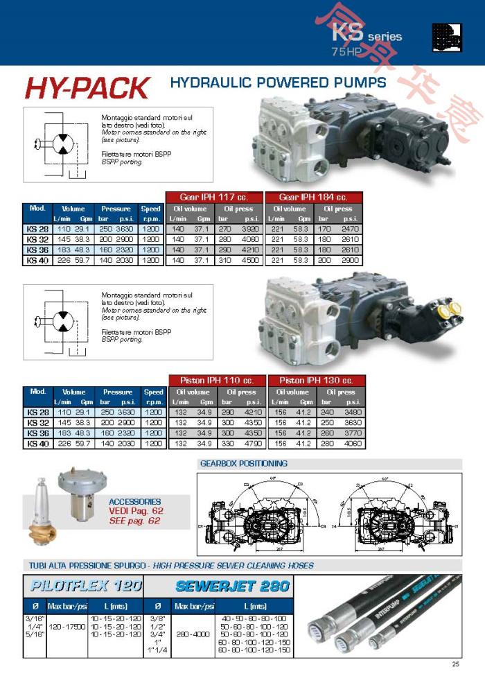 流量110-225L/min, 壓力140-250Bar, 大型疏通車